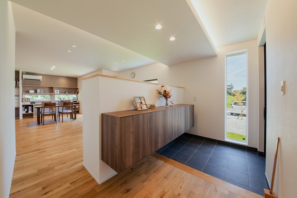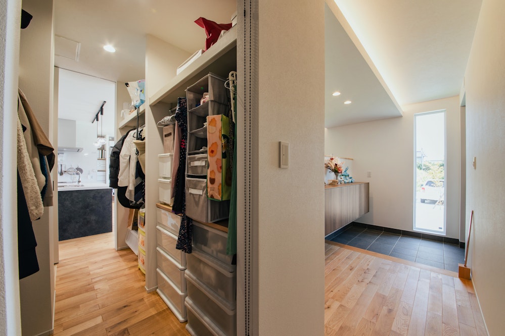 玄関から見えない裏側のスペースには、通り抜けれるファミリークローゼットがある。