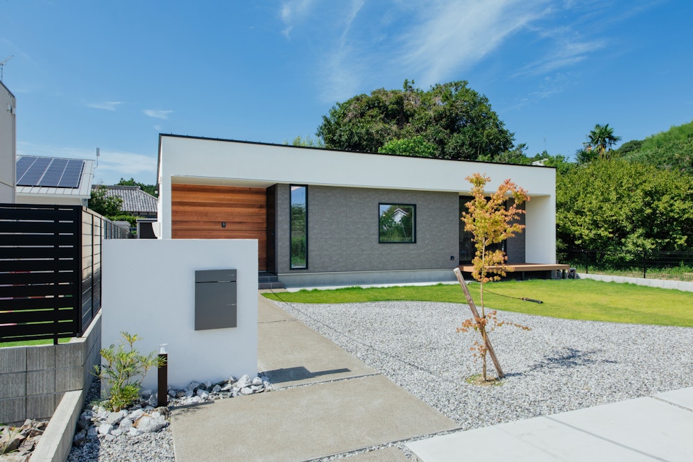 外観はどこから見てもシンプルでおしゃれな一軒。
