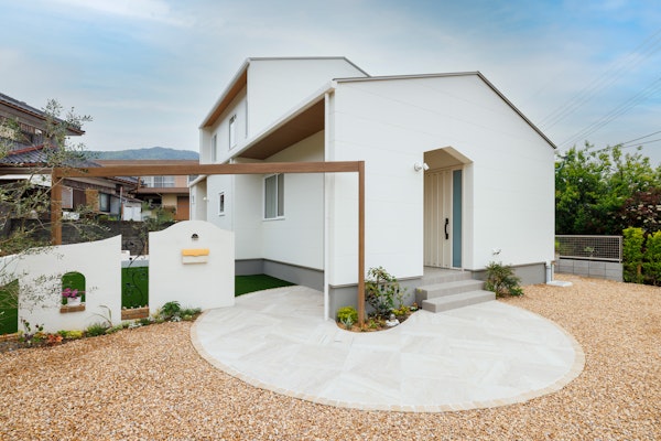 南欧風MIXの、おしゃれで可愛いシンプルな白い家。