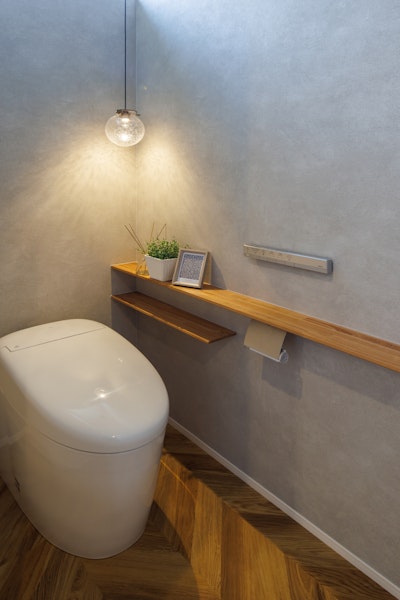 ぽってりとした形のタンクレストイレが優しい印象を与える。