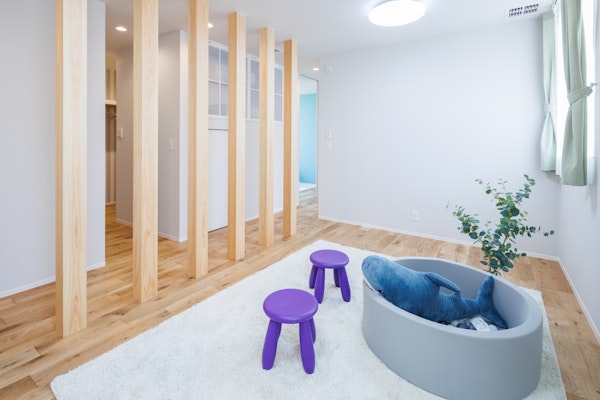 子供たちが遊べる二階のスペース。扉がない空間になっている。