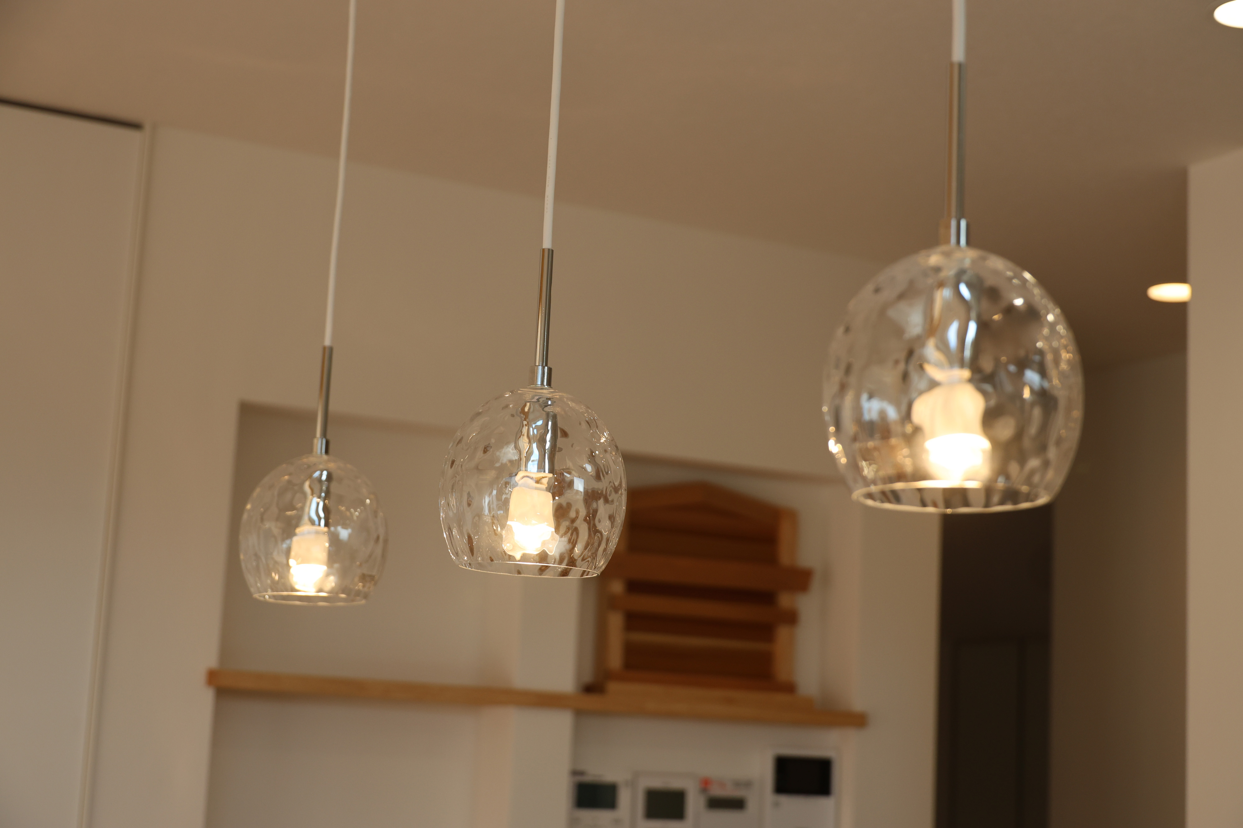 ゆらめきガラスのペンダントライトがとっても素敵。