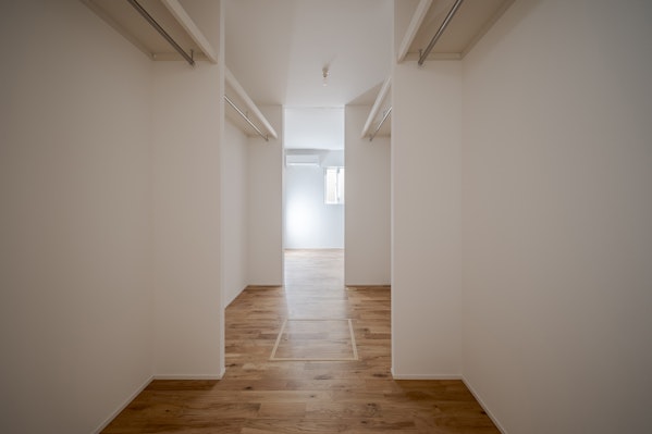 大容量のファミリークローゼットは通り抜けれる便利なタイプ。